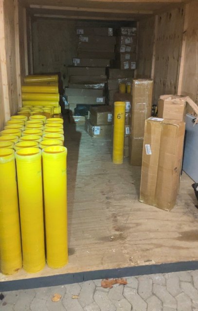 In één van de verhuurde boxen werden 356 glasvezelbuizen aangetroffen, waarvan enkelen sporen van roet en kruitaanslag vertoonden. De buizen variëren van 2 tot 10 inch. Een vuurwerkspecialist van de politie heeft de buizen onderzocht en de volledige partij in beslag genomen. De politie doet verder onderzoek naar de herkomst en eigenaar van het materiaal.